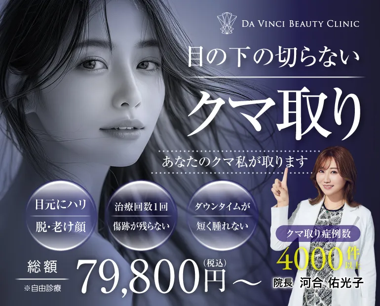 目の下のクマ取りでは、膨らみだけでなく凹みも同時に改善することで、より自然で若々しい仕上がりを目指せます。