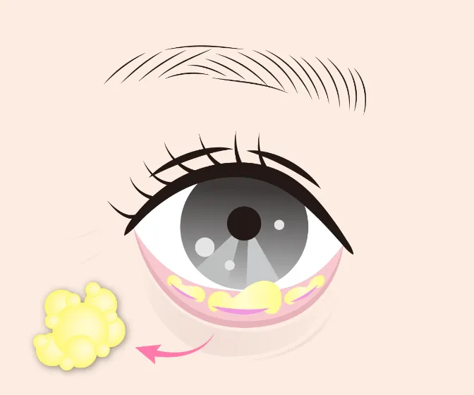 まぶたの裏側の結膜に穴を開け脂肪の入った袋を露出させます。