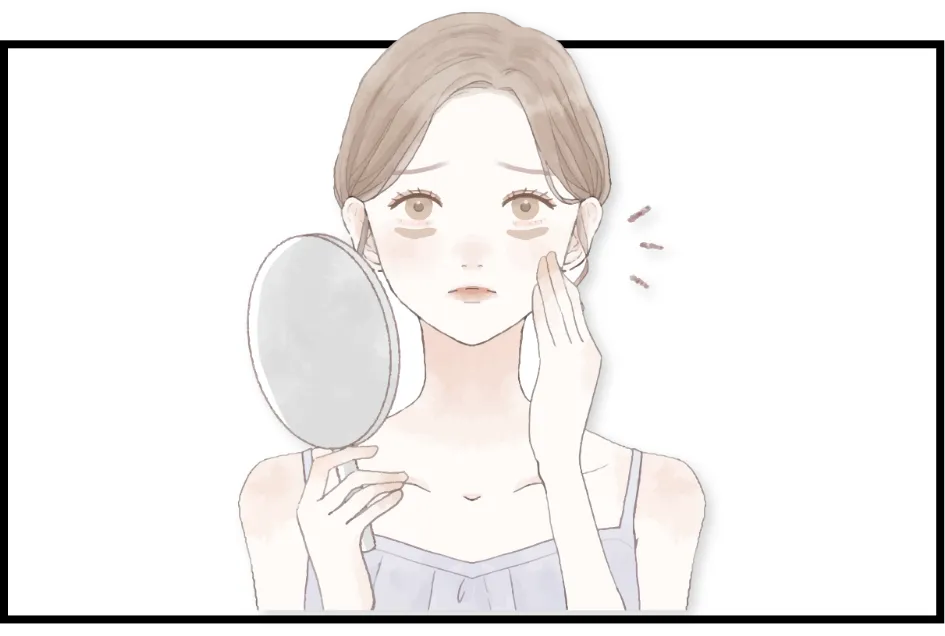 目を擦りすぎることで角質が厚くなったり、メイクの落とし残しによりメラニン色素が沈着したりすることが原因です。