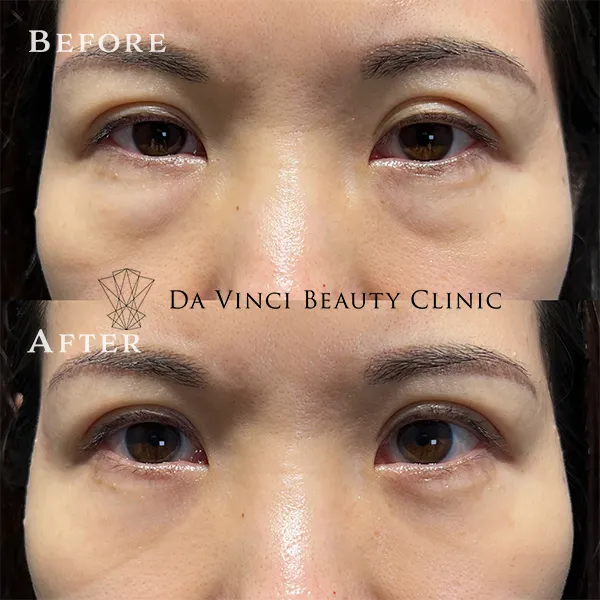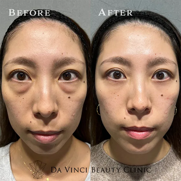自身の体から脂肪を採取し定着しやすい様加工した後、目の下の凹みを改善する方法です。