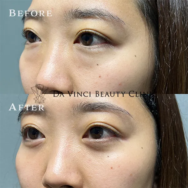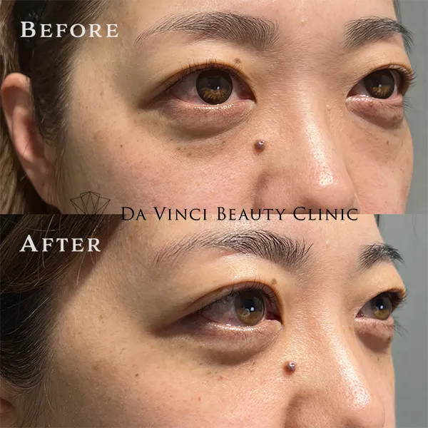 自身の体から脂肪を採取し定着しやすい様加工した後、目の下の凹みを改善する方法です。
