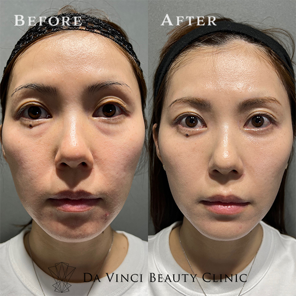 経結膜脱脂のみでは目の下が凹む方に適応の施術です。