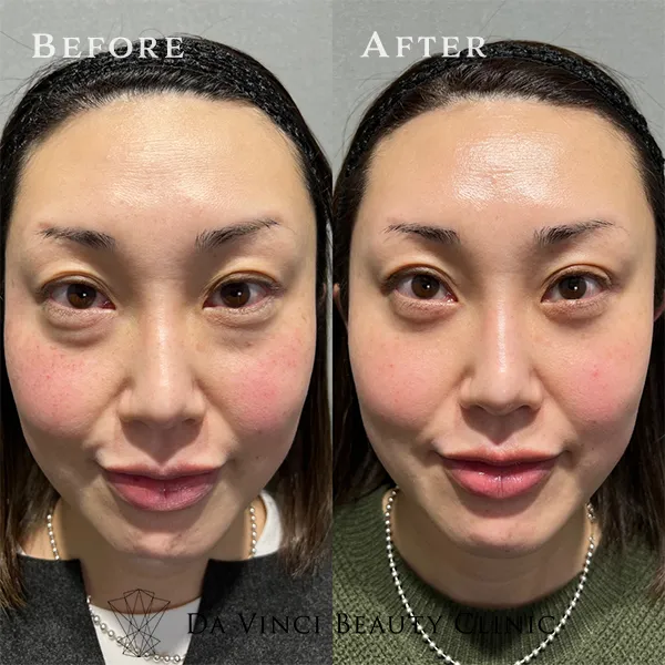 経結膜脱脂のみでは目の下が凹む方に適応の施術です。