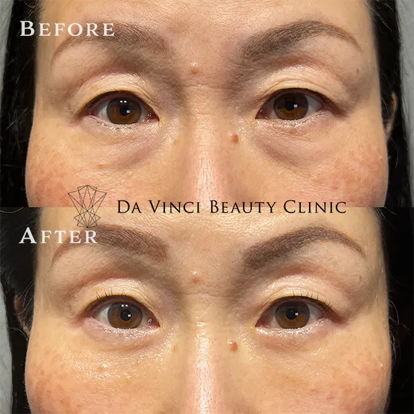 自身の体から脂肪を採取し定着しやすい様加工した後、目の下の凹みを改善する方法です。