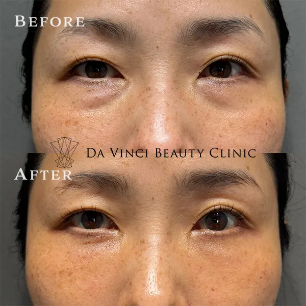自身の体から脂肪を採取し定着しやすい様加工した後、目の下の凹みを改善する方法です。
