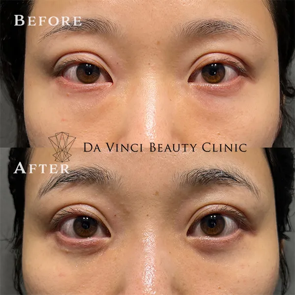 経結膜脱脂のみでは目の下が凹む方に適応の施術です。