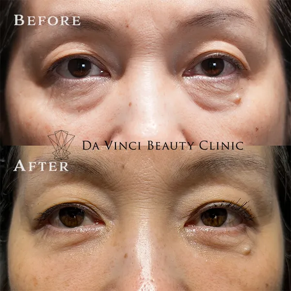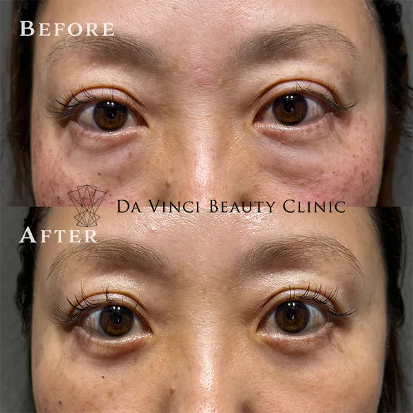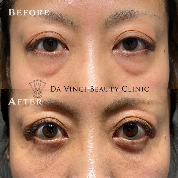 自身の体から脂肪を採取し定着しやすい様加工した後、目の下の凹みを改善する方法です。